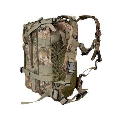 -wymiary: 45cm x 25cm x 25cm,  -pojemność: 28l -dwie główne komory z dodatkowymi kieszeniami wewnątrz, -tylna wzmocniona kieszeń zamykana na rzep, -dwie zewnętrzne zasuwane kieszenie wyposażone w taśmy molle, -regulowane paski boczne, dolne i przedni zamykane szybkozłączką, -regulowane szelki i pas biodrowy, ​-wzmocniony główny uchwyt