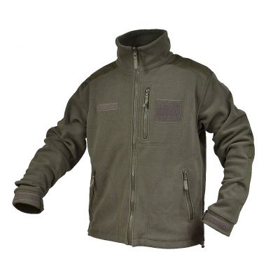 -polar(230g/m2) zintegrowany z podpinką siatkową (75g/m2), -zamek błyskawiczny z patką przeciwwiatrową, -trzy zasuwane na zamek błyskawiczny kieszenie, -barki i łokcie wzmocnione materiałem z nylonu, -regulacja kołnierza, mankietów i dolnej części bluzy, -może być użyta jako podpinka do kurtki Grom,