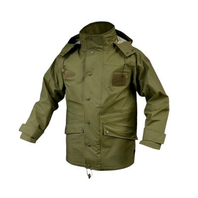 -kołnierz z doczepianym na suwak kapturem -dwukierunkowy zamek błyskawiczny osłonięty zapinaną na napy patką -oddychalność: 7500g/m2/24h, wodoszczelność: 10000mm -dwie zasuwane kieszenie biodrowe zakryte patką zapinaną na napy -dwie zasuwane wewnętrzne kieszenie na wysokości klatki piersiowej -regulacja w pasie i dolnej części kurtki, regulacja mankietów, -panele velcro na rękawach i klatce piersiowej, ​-kompatybilna z polarami Grom i ECWCS II