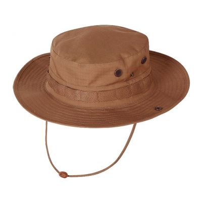 -szerokie rondo chroniące przed słońcem, -taśma wspomagajaca maskowanie, -otwory wentylacyjne, -zatrzaski na bokach umożliwiające podpięcie ronda,Parametry techniczne produktu Kapelusz Jungle coyote brown XL