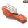Rękojeść noża tworzą okładziny z drewna orzechowego, mocowane do trzpienia 3 śrubami. Profilowany chwyt z wycięciami na palce oraz frezowanie na grzebiecie powoduja, że nóż stabilnie leży w dłoni i mamy nad nim pełną kontrolę. Rękojeść zakończona jest zaczepem, umożliwiającym wplecenie linki zabezpieczającej lub ozdobnego oplotu. Do przenoszenia noża na pasie służy kydexowa pochewka z linką paracord.