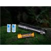 Do obsługi latarki służy tylny włącznik taktyczny odpowiedzialny za włączanie/ wyłączanie latarki, zmianę trybów oraz aktywację stroboskopu. Fenix PD32 V2.0 może być zasilana za pomocą akumulatora 18650 lub 2 baterii jednorazowych CR123.